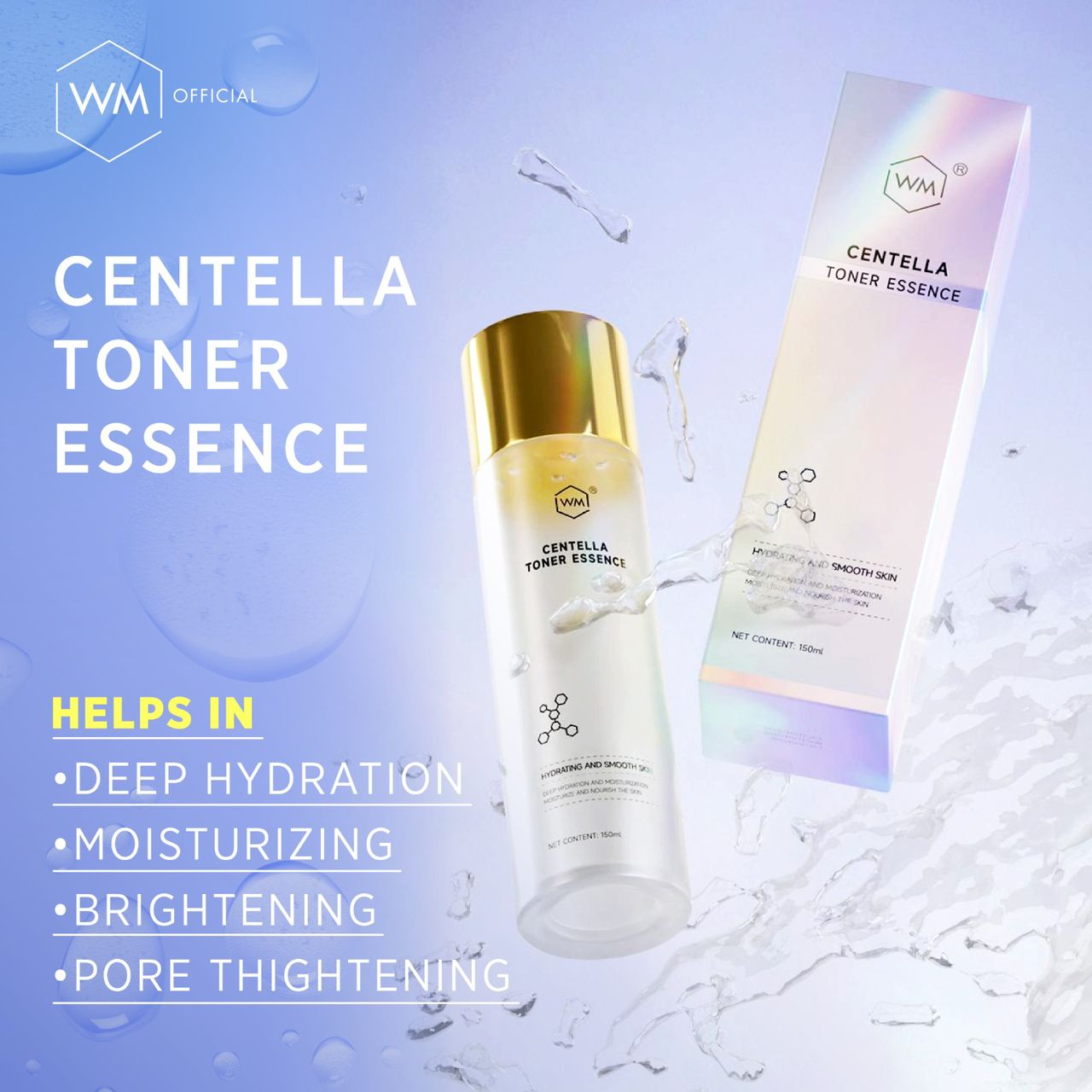 Experience deep hydration and smooth skin with the WM Centella Toner Essence. Featuring Centella Asiatica Extract (also known as Cica) alongside Hyaluronic Acid and other plant extracts, this essence works to soothe irritation, improve your skin barrier function, and support collagen production.